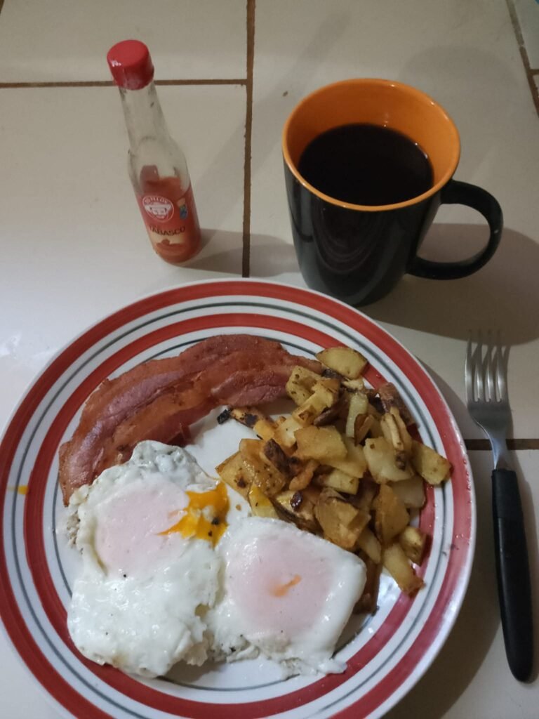 Lets start with breakfast, there are two resturants in Puerto Jimenez that have a good breakfast, eggs, potaoes, bacon, french bread .
