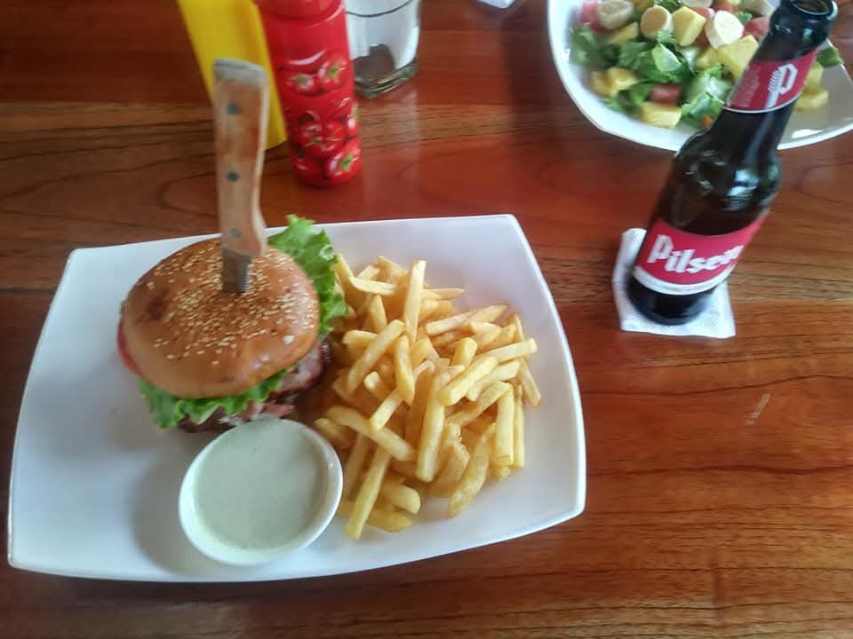 Cheapest Hambuger in town! The Soda Colectivo has a burger,with all the toppings including French fries for Only $6.00 US. It is a pretty good hamburger .Soda Colectivo is located on the first road to right coming into Puerto Jimenez. It will be on the right hand side of the street. You will go pass Pali, the bus station a small wood shop then before you get to the hard ware store it will be on the right hand side.