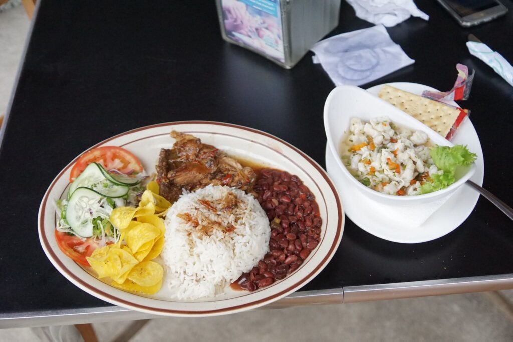 What to eat, always comes up thru out the day. There are a lot of resturants in Puerto Jimenez , from under $5.00 up to over $50.00 a plate. Variety of restaurants of Puerto jimenez Costa Rica from a simple breakfast to a a huge seafood plater overlooking the ocean.. Then the other resturants will have a local breakfast . A local breakfast will have rice and beans made into what is called Gallo pinto. It is a rice dish with green, red peppers, onions, garlic, and a sauce, toped with fresh cilantros’. The breakfast will include Eggs , tortillas, fresh bread and the speical meat of the morning.