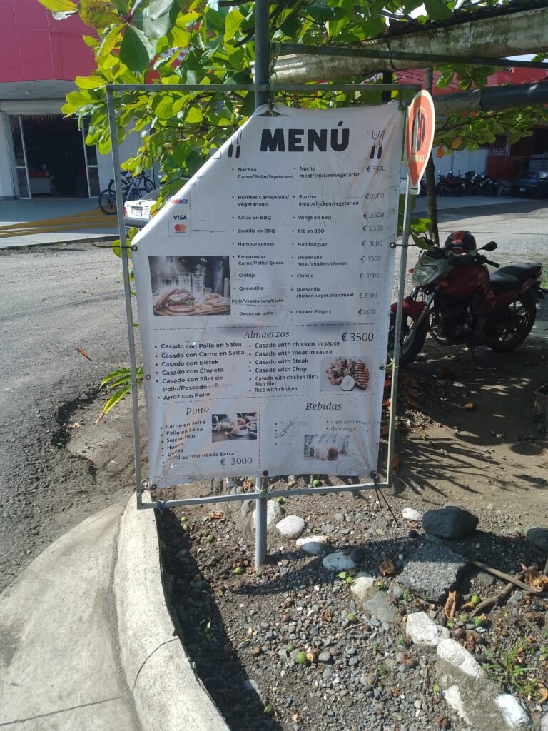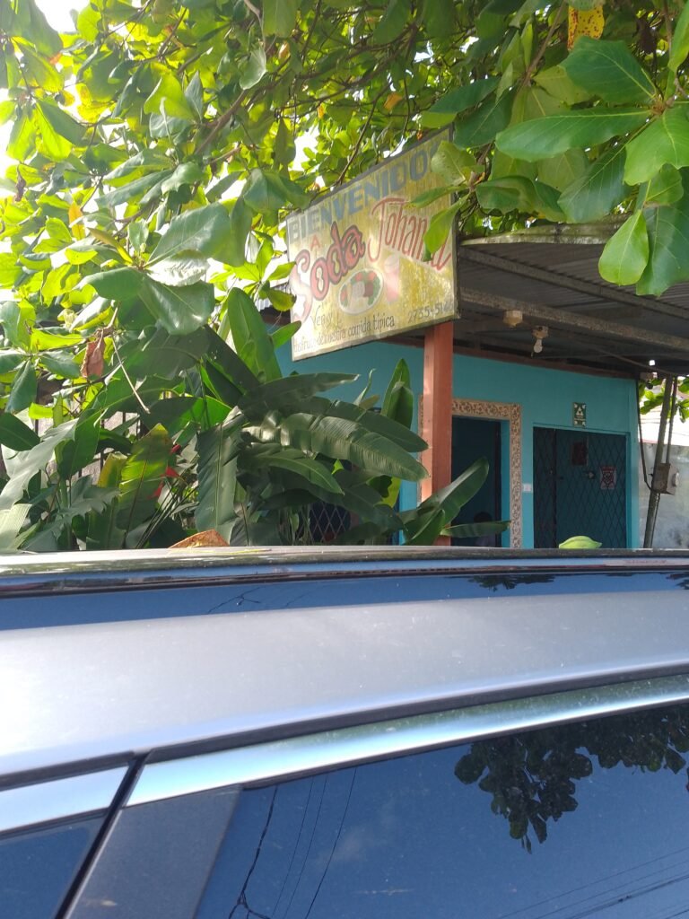 From the bakery if you walk to the next intersection 30 meters. Take a right and across the street is Soda El Localito. In front of the soda is a big almond tree , that provides lots of shade. They serve typical local food , from gallo pinto to casados , Casados are the daily speical. The food is excellent, a big plate , ask for their fresh jucies and thier home made chili’s